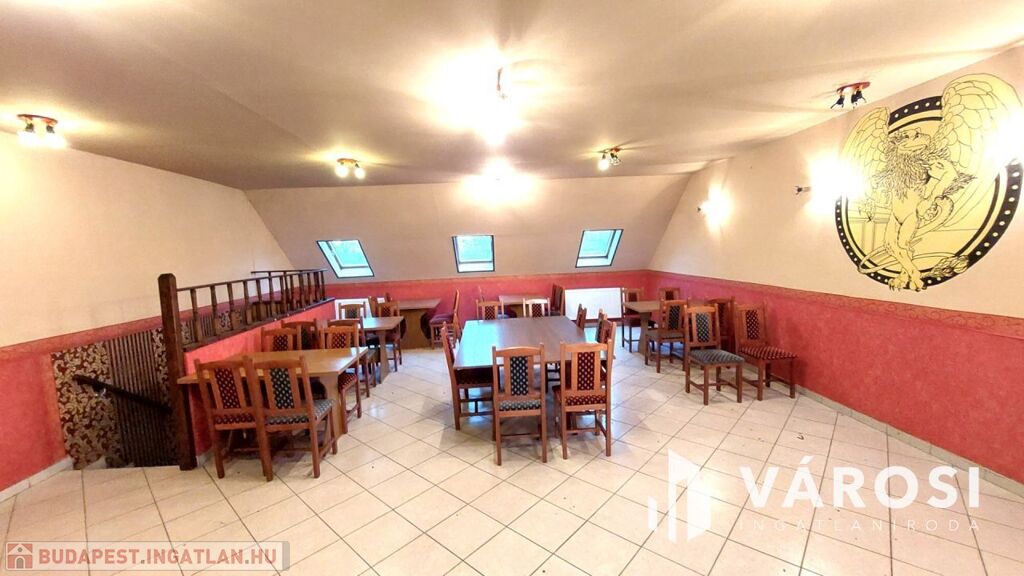 A 200 m2-es pizzéria-vendéglő önálló bejárattal és kerthelyiséggel rendelkezik. Azonnal bérbeadható. Az épületben vendégtér, mosdók és egy nagy méretű pizzakemence található. A vendéglő működtetéséhez szükséges helyiségek jó minőségűek, a hatósági előírásoknak megfelelnek. Az épület akár más jellegű üzleti vállalkozás számára is sokoldalúan hasznosítható.