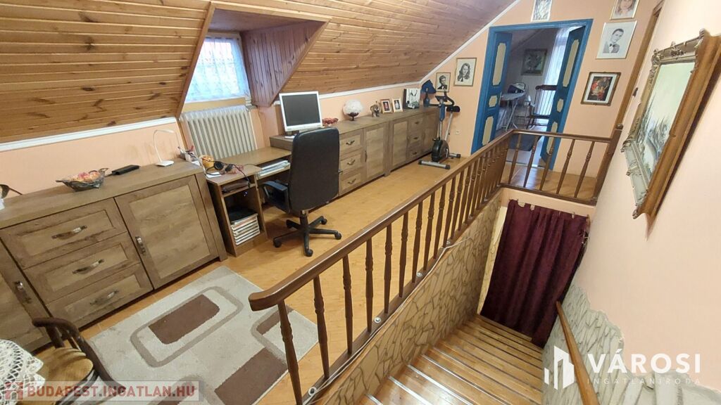 A két szintes, 200 m2-es családi házban földszinten és emeleten egy-egy nappali, fürdőszoba és hálószobák találhatók. A földszinti nappalihoz téli kert csatlakozik 8 személyes jakuzzival. Innen közvetlen kijárat nyílik a gondozott kertbe és az egyik teraszra. Az alsó lakótérhez kazánház és két garázs tartozik. Az emelet külön bejáraton keresztül is megközelíthető, így akár külön lakrész is lehet.