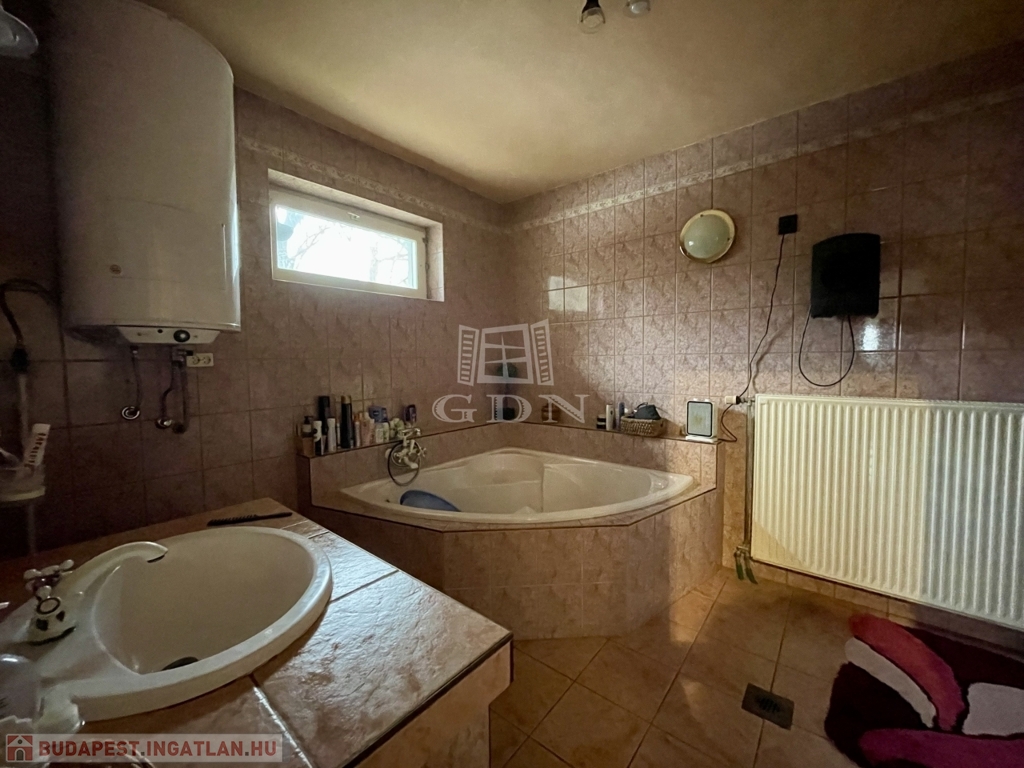 A félszintes eltolásokkal kialakított, öt szintes épületet (bejárat felőli traktus három, hátsó traktus kettő szintes) eredeti tulajdonosa 1991-ben kezdte építeni, a jelenlegi tulajdonos '94-ben módosította, a befejezés pedig 2001-ben történt meg. A ház készültségi állapota 90%-os. A legalsó szint hiányzó munkái (burkolatok, belső festés, és a pincehelyiség végső kialakítása, ahol mosdóhelyiségek is helyet kaphatnak) az új tulajdonosra vár.