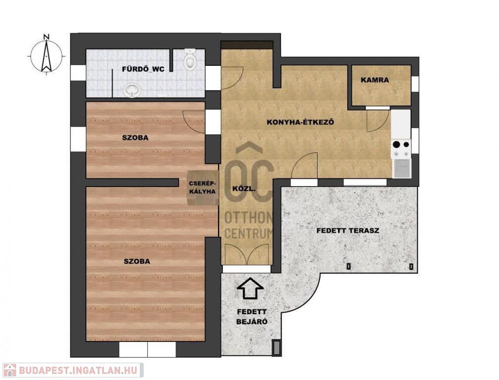 Szobákban laminált parketta, többi helyiségben járólap a padlóburkolat.