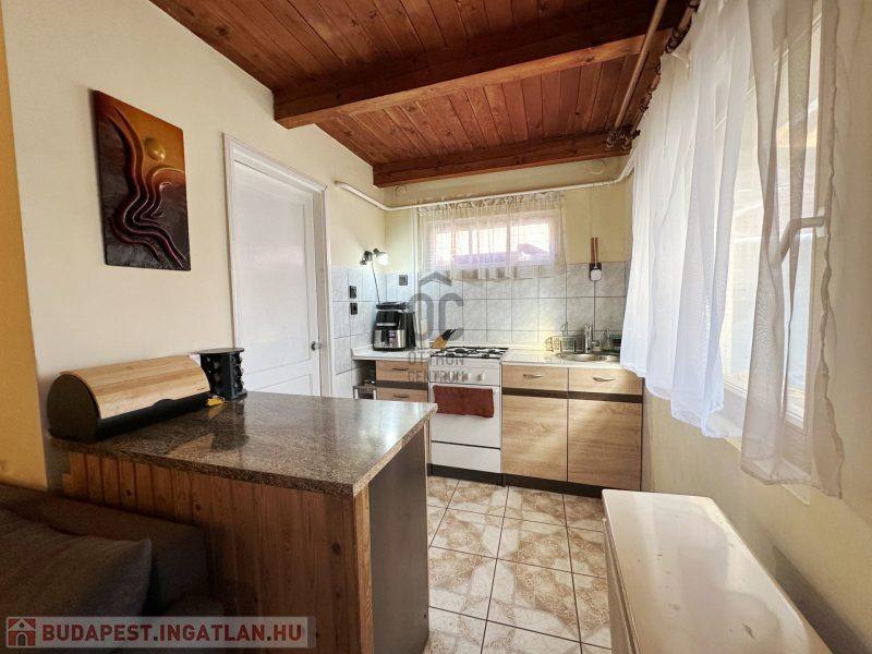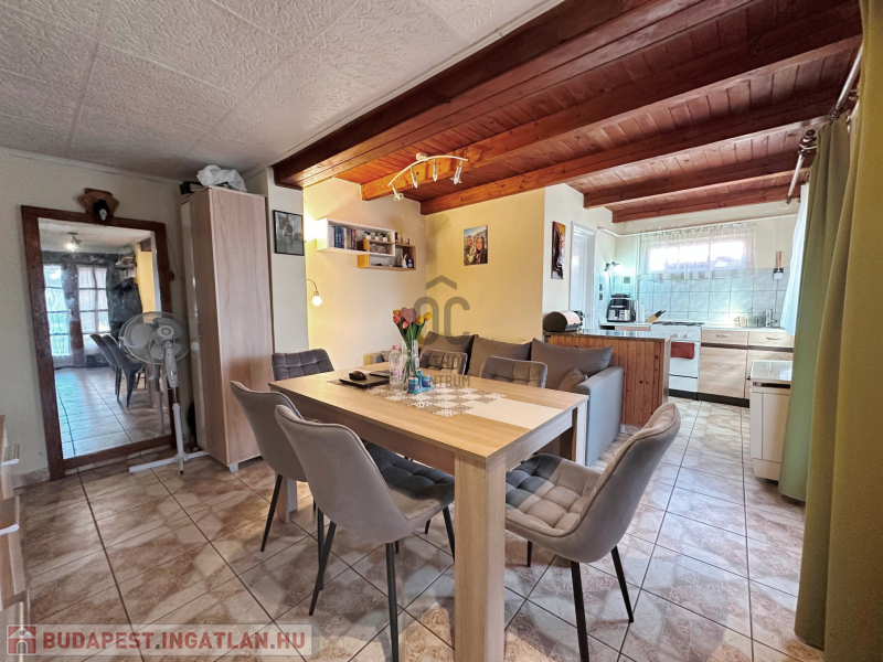 A 253 m2-es telek kis energiával rendben tartható. Egy autóval be lehet parkolni az udvarba.