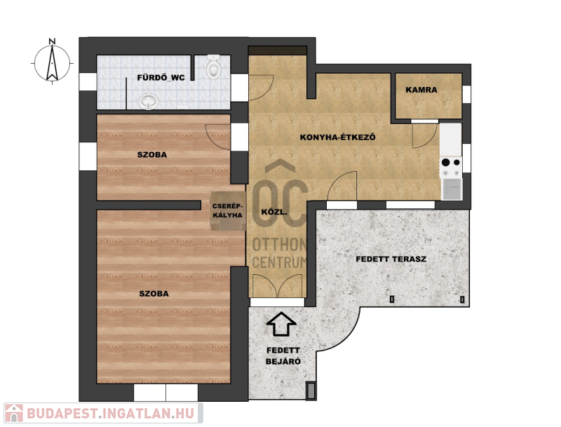 Szobákban laminált parketta, többi helyiségben járólap a padlóburkolat.