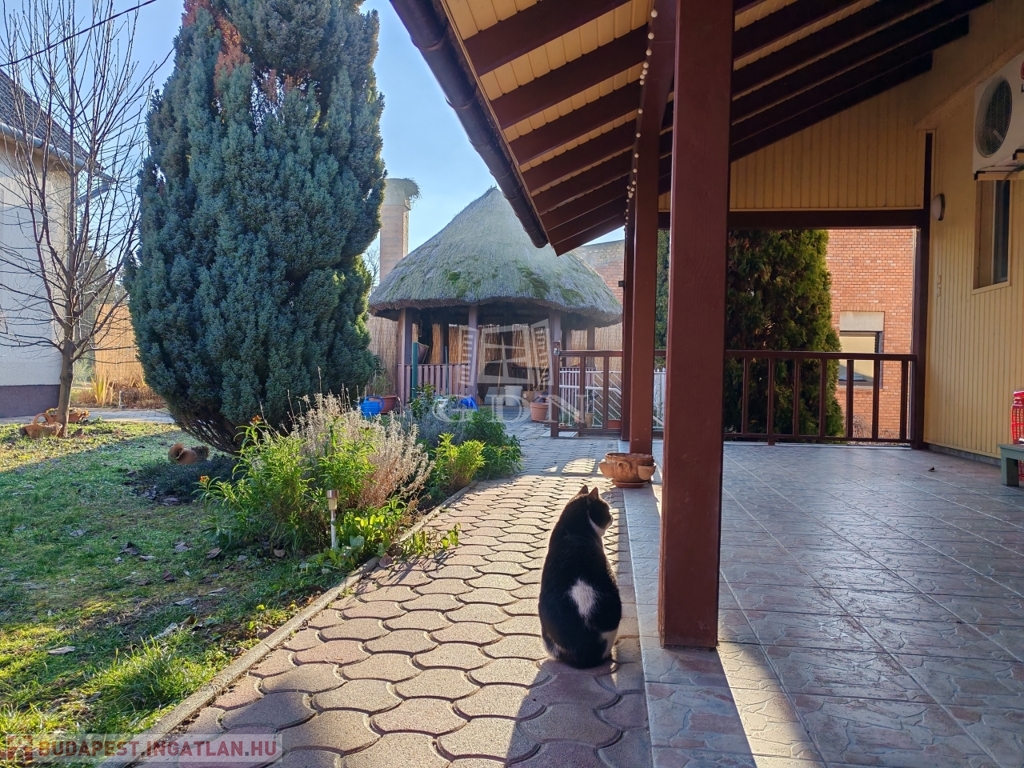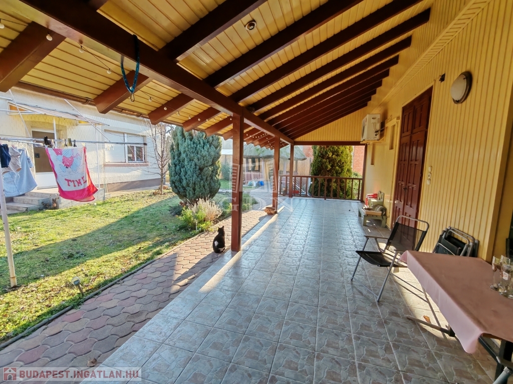 a hátsó zárt garázson keresztül is kijuthatunk. A telek hátsó részében állattartásra alkalmas ólak, valamint háztartási helységek és külső WC is található.