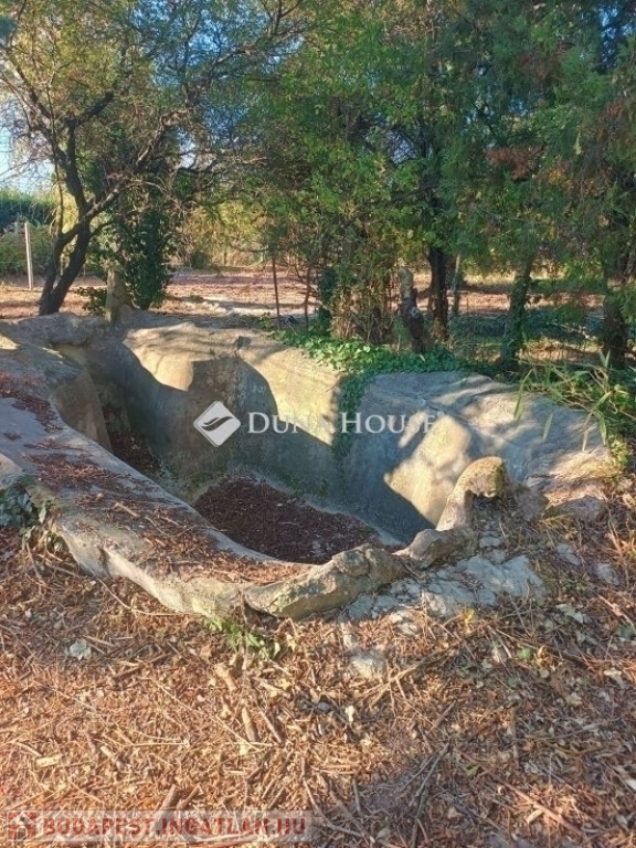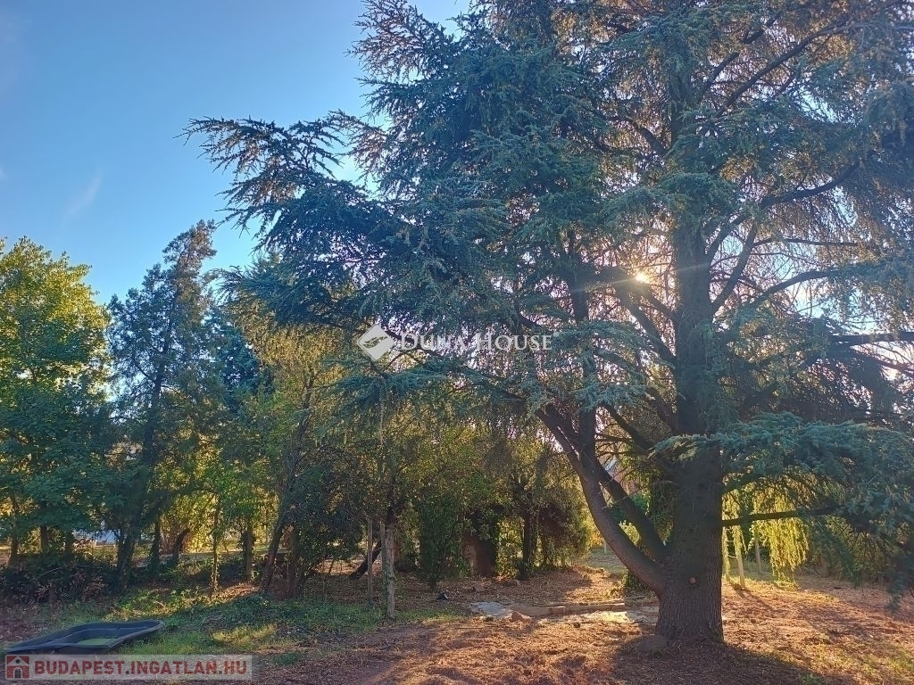 A terület 1740 m2 szinte sík, tölgyfákkal körülvett, ennek köszönhetően nagyfokú intimitást biztosít. A területen számtalan fa, bokor, dísznövény található. A ház mellett hangulatos kiülő van, a telek közepén pedig egy beton medence, ami alkalmas kerti tónak vagy medencének.