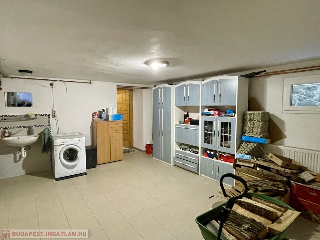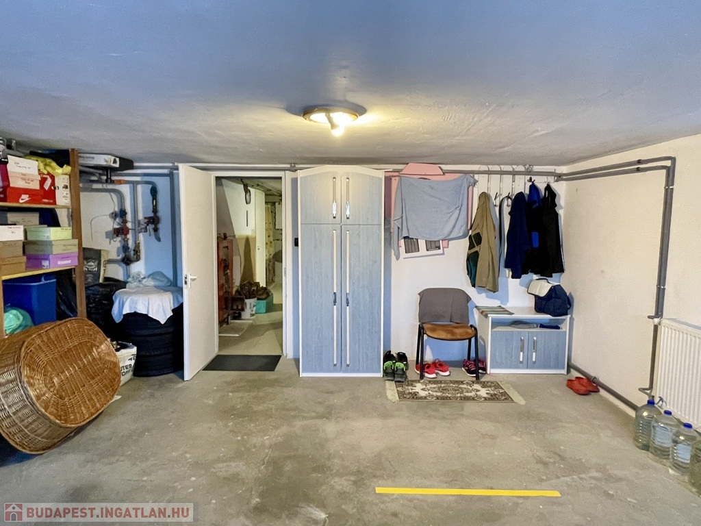 A szuterén szinten két külön bejáratú garázs, kazánház (kondenzációs gázkazán + fatüzelésű kazán), fatároló, kamra, valamint tusoló és kézmosó található.