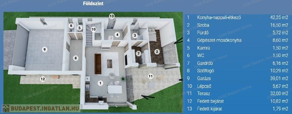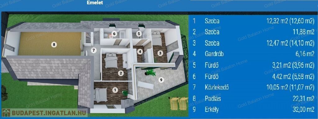 A kettő szintes ház, négy hálószobával, nagy amerikai konyhás nappalival, három fürdőszobával, gardróbbal, külön WC-vel, teraszokkal, dupla garázzsal, kényelmes életteret biztosít Ön és családja számára.