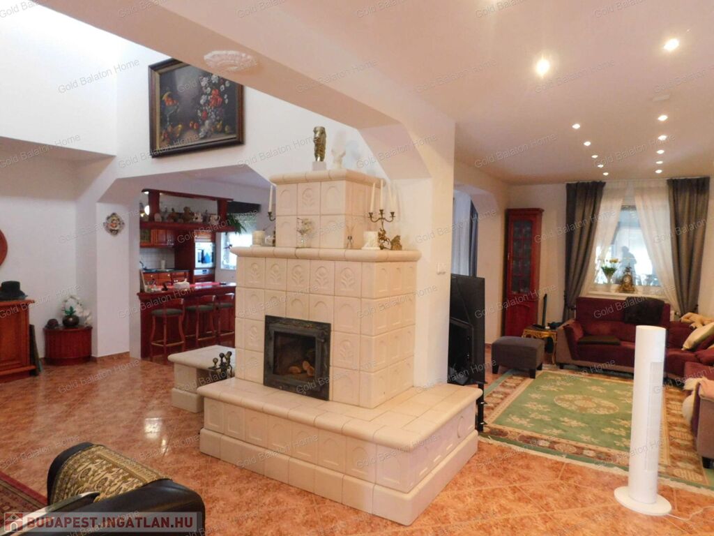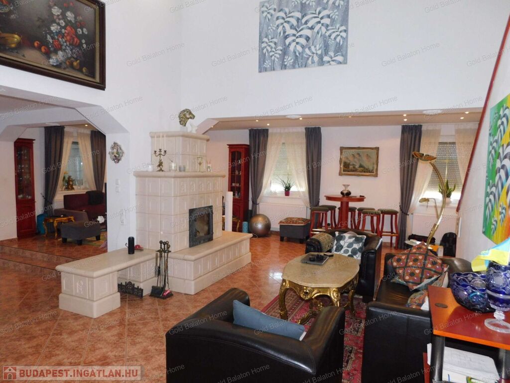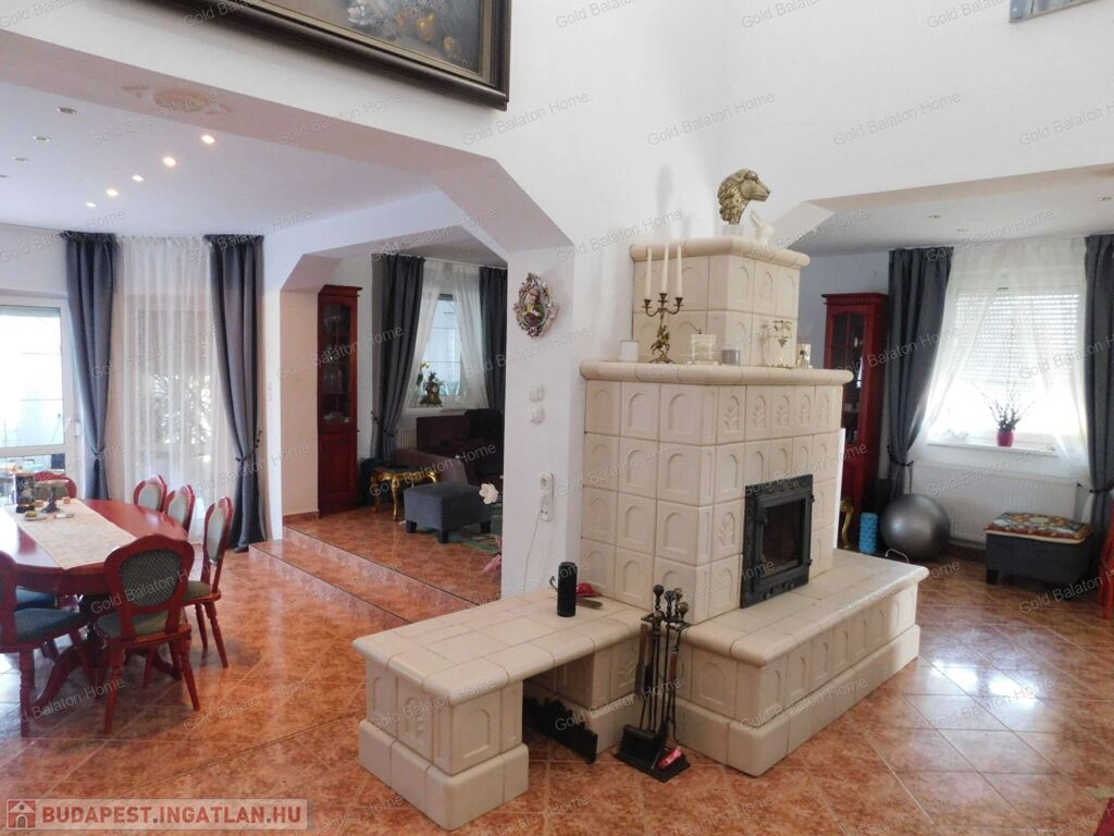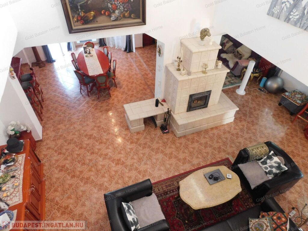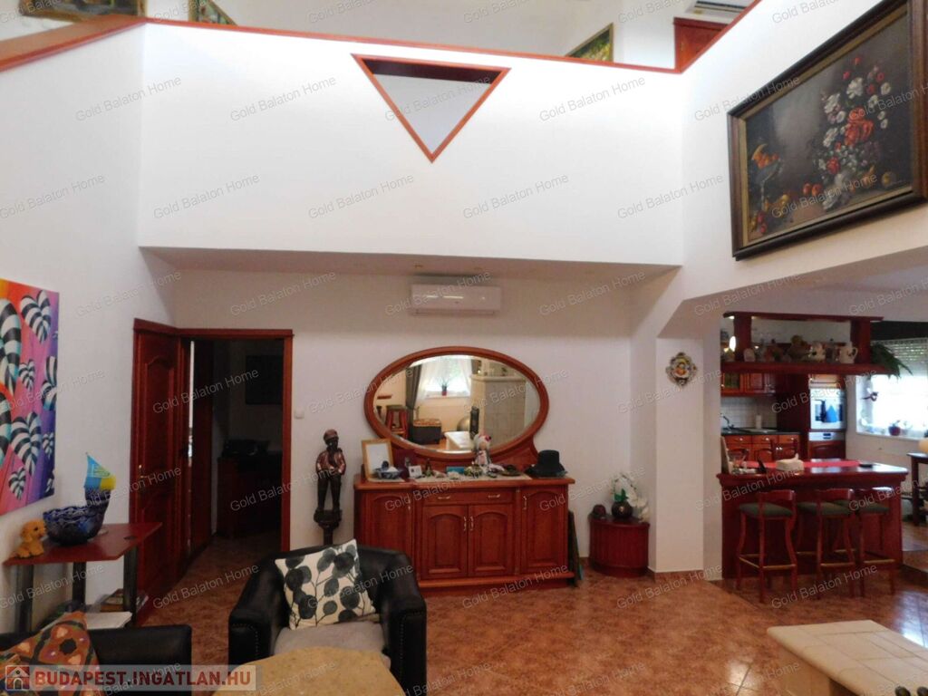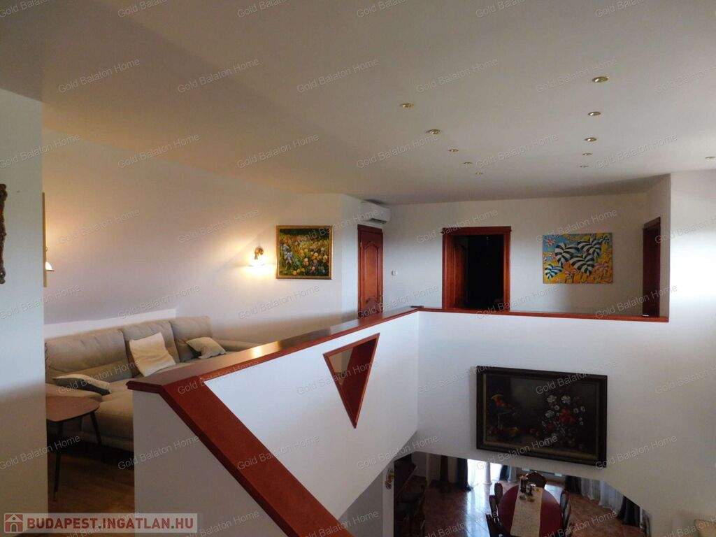 Háromszintes, Balatonra panorámás CSALÁDI HÁZ tágas, 75 nm-es nappalival, 5 szobával, eladó.