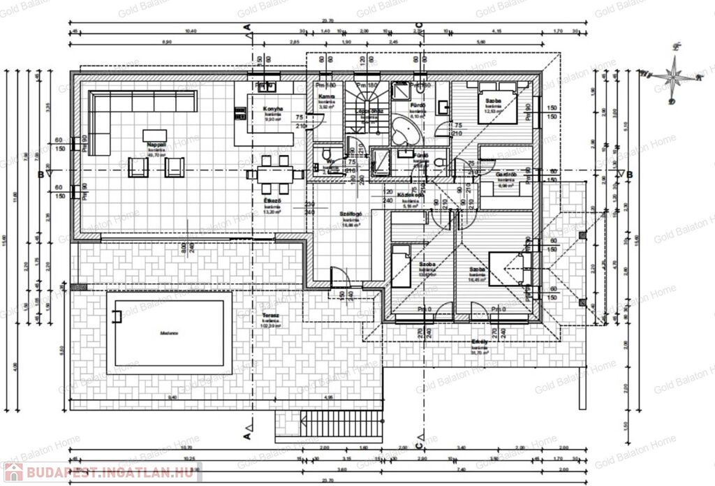 - hasznos lakótér: 228 nm, telek mérete: 2376 nm