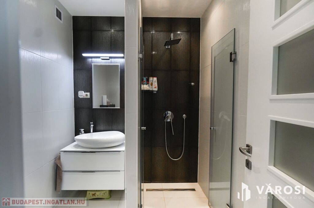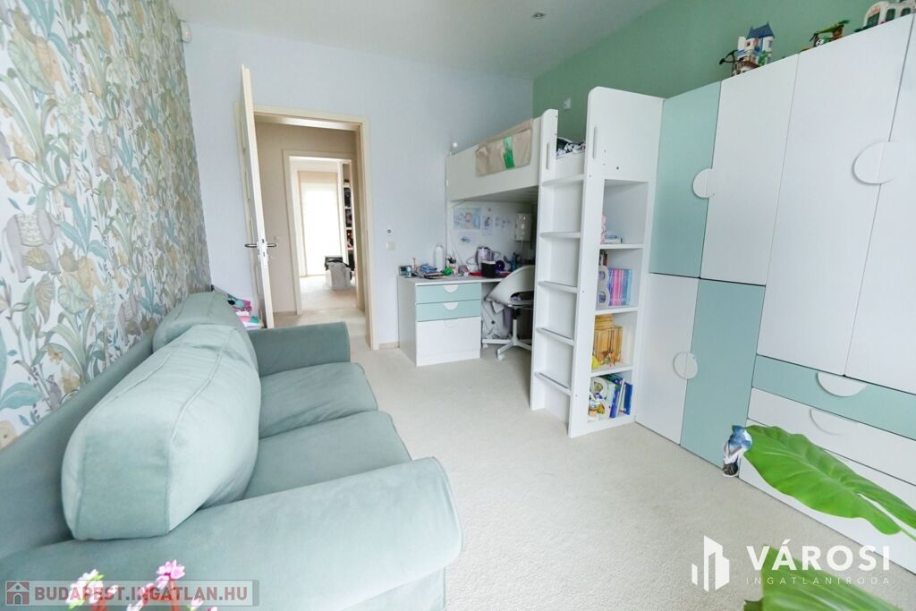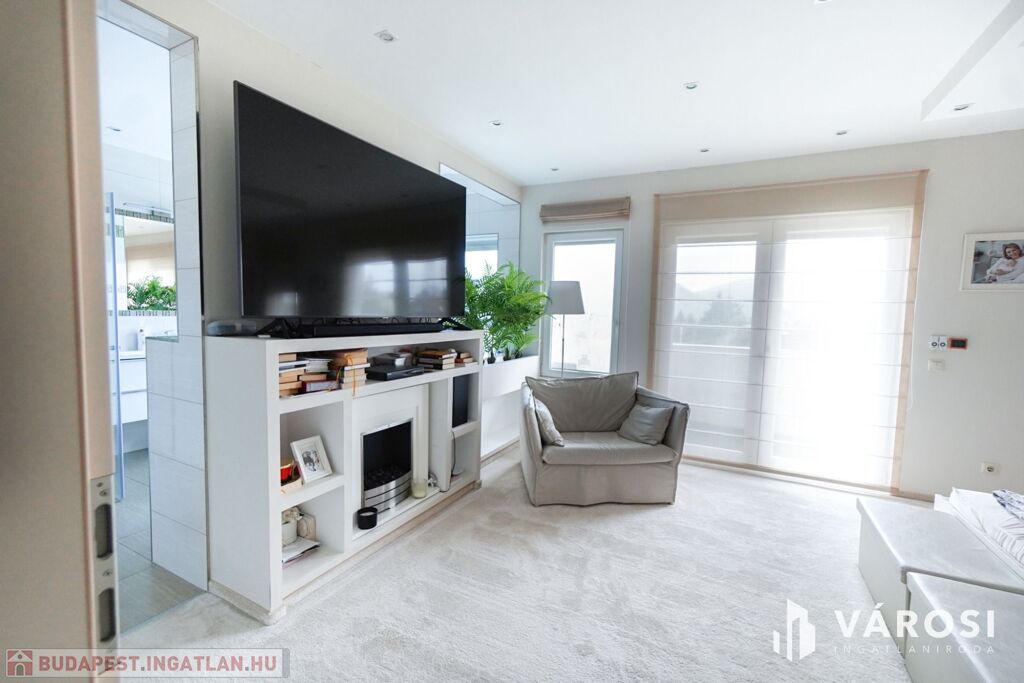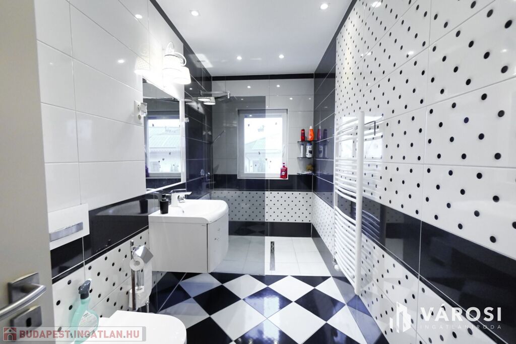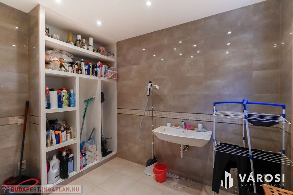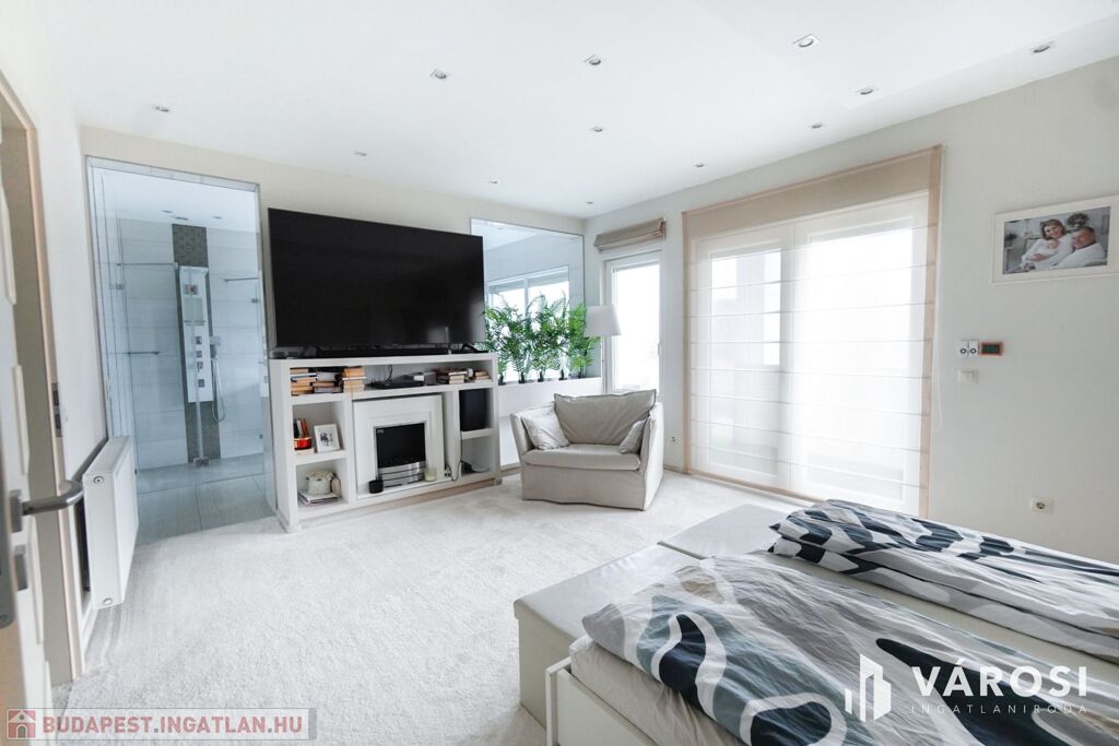 Az emeleti fürdőből egyedülállóan élvezheti a táj szépségeit akár fürdés közben a szintén nagyfelületű ablakoknak köszönhetően. Tágas gardrób, padlófűtés, dekorvilágítás, mosószoba.