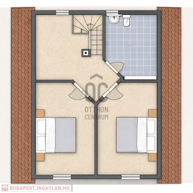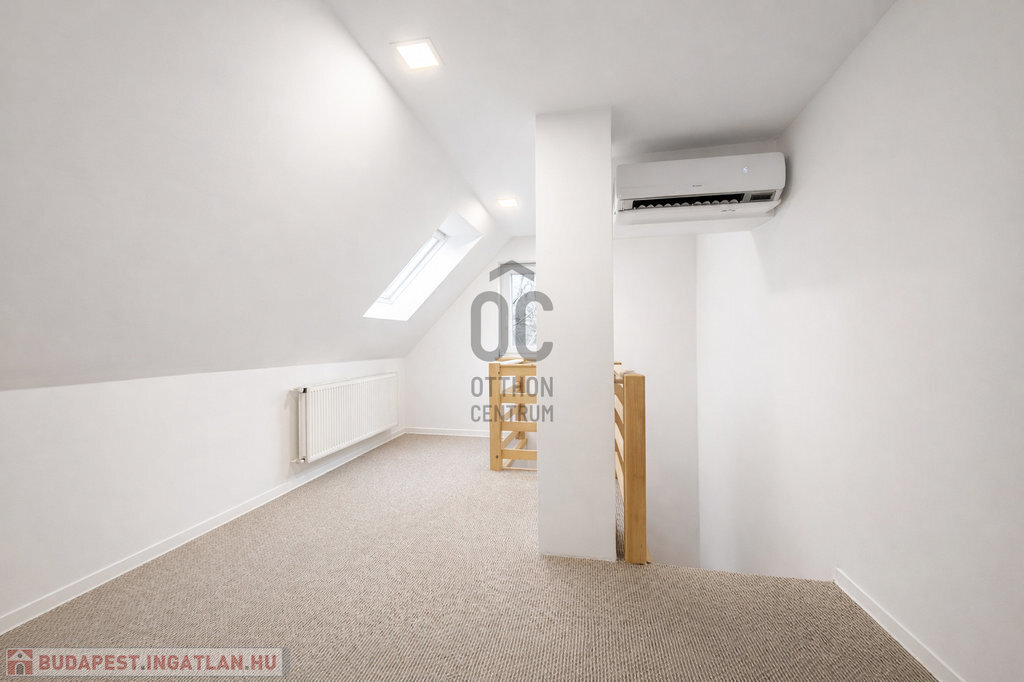 A felső szint fűtése radiátorokkal megoldott, így ideális háló- vagy gyermekszobák kialakítására.