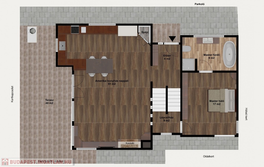 3x25 amper áram jön be a házba, a két parkolóhelynél megoldható az elektromos autótöltési lehetőség.