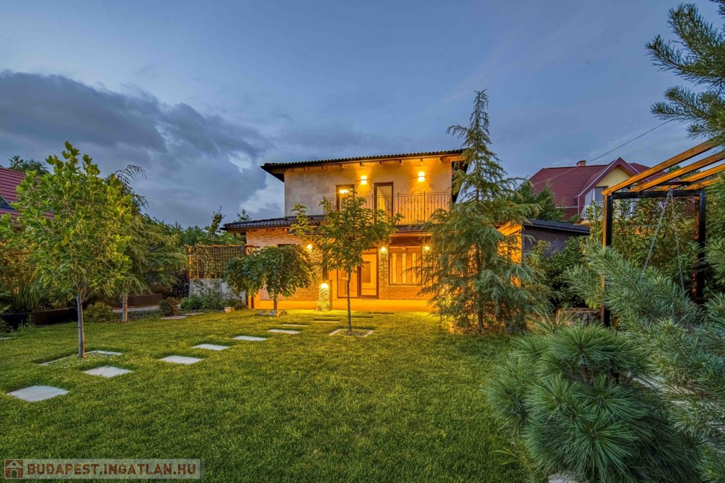 Csömör középhegyen Budapest felé örökpanorámás, délnyugati fekvésű, 3 szintes, 5 szobás, minden igényt kielégítő, újszerű, luxus minőségű, 2018-ban épült, 221 m2 nettó lakótérrel rendelkező családi ház 1157 m2-es telken, azonnali költözési lehetőséggel eladó.