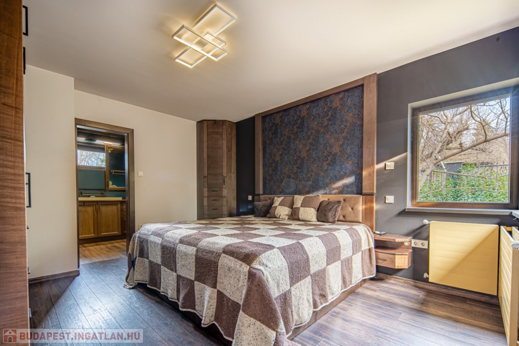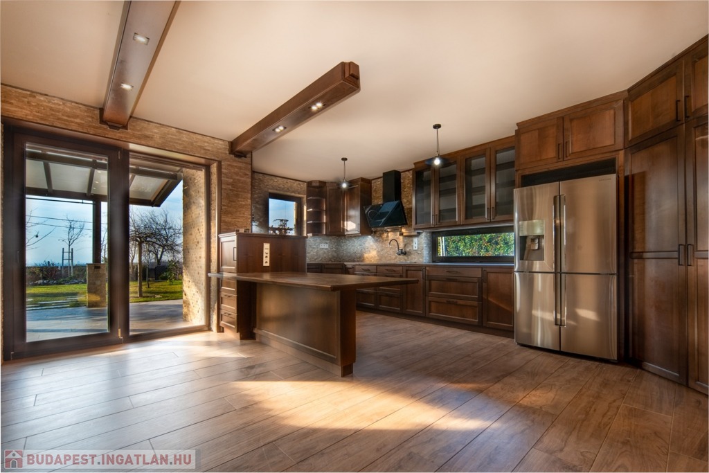 A ház minden szeglete úgy lett kitalálva és megépítve, hogy segítse, egyszerűsítse a tulajdonos életét: a teljesség igénye nélkül: elektromos redőnyök, megemelten elhelyezett NEFF konyhai gépek, minden növényhez kiépített autómata locsolórendszer fúrt kutakról, távolról irányítható világítások, kamera- és riasztórendszer, minőségi anyagok, 3 rétegű nyílászárók... Minden fürdőben padlófűtés és törölközőszárítós radiátorok, 32 kw-os Viesmann cirkófűtés, valamint a klimatizált nappaliban található kandalló levegője is át van vezetve a hálóba.
