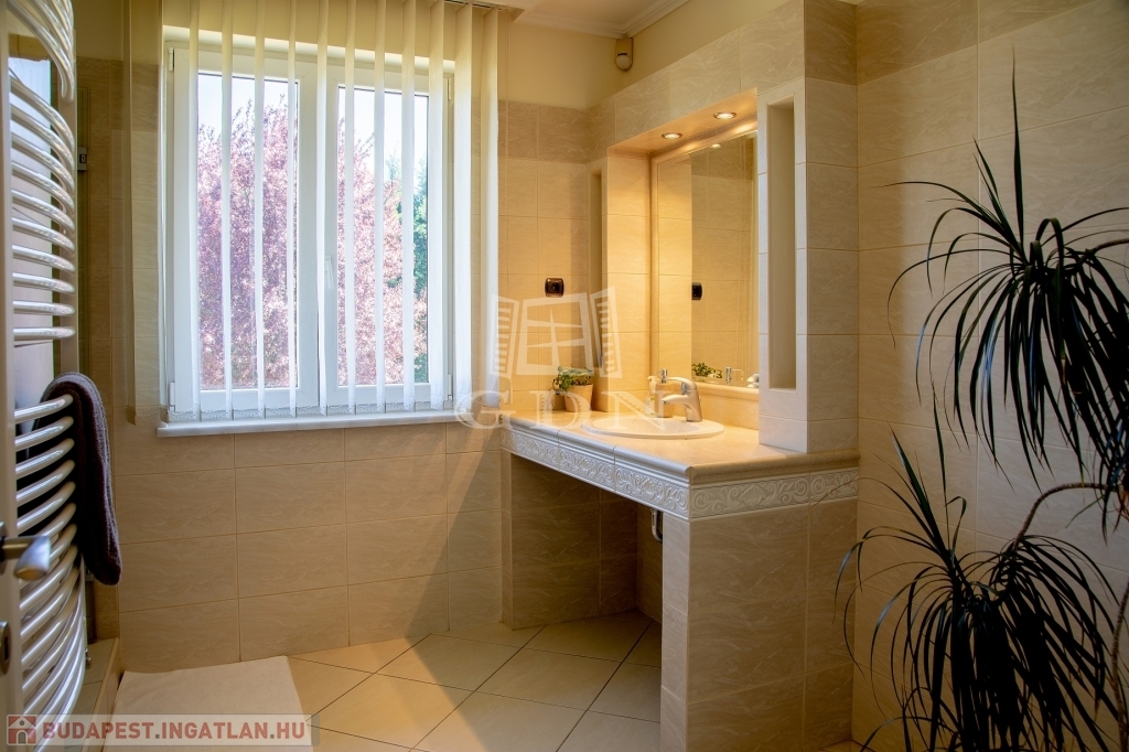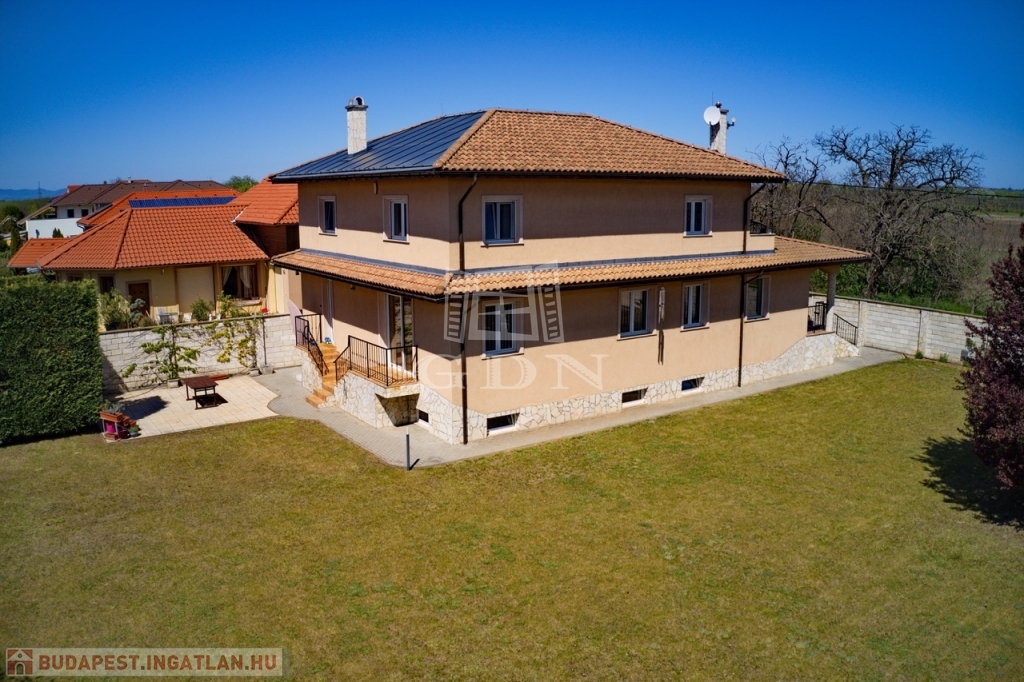 A ház dupla telekre épült 1309 nm-es így a 3 szintes 364 nm-es 5+1 félszobás 2 gardrób szobás ingatlan mellett bőven maradt hely a gondozott parkosított kertnek.