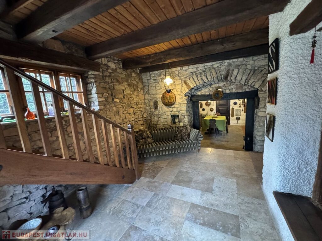 - kívül- belül fröccsentett fehér vakolat, nappali kőfalak, kőből kirakott gyönyörű áthidalók
