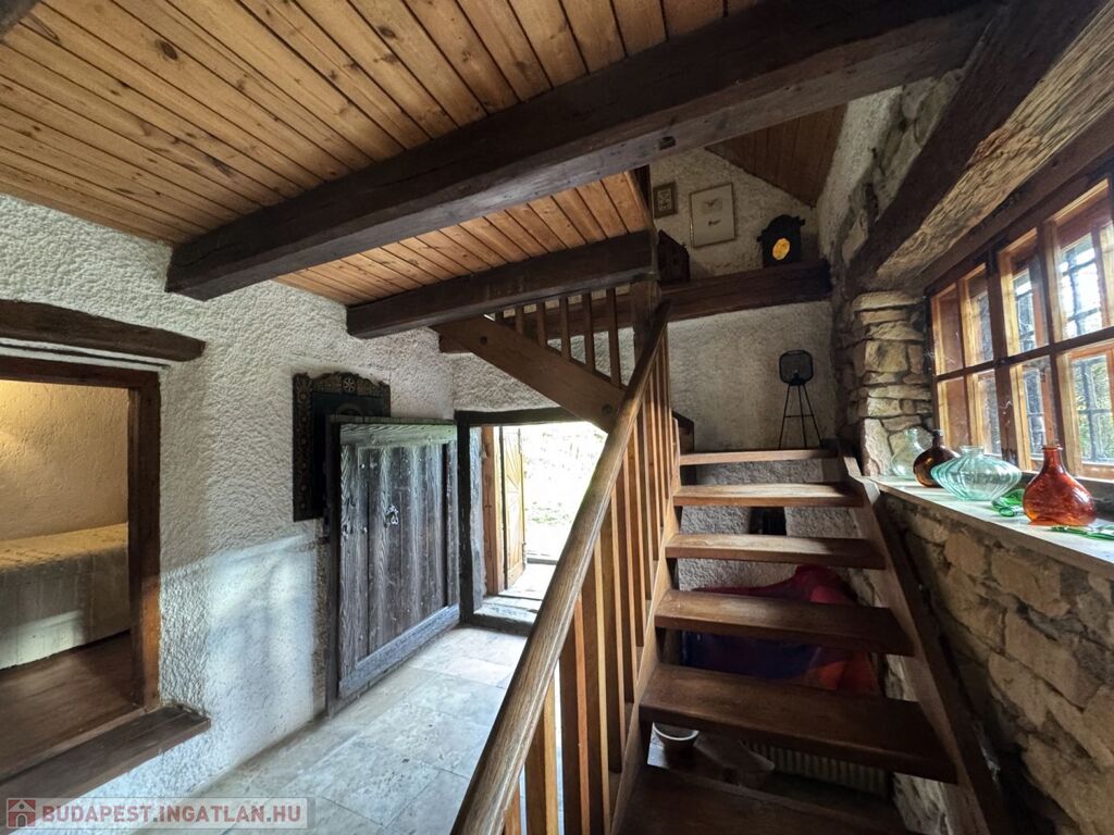 A ház további része is kőfalakból áll. Itt egy nappali, hálószoba került kialakításra. Innen vezet egy fa lépcső a tágas tetőtérbe, ahol nagy belmagasságú, egy légterű háló található.