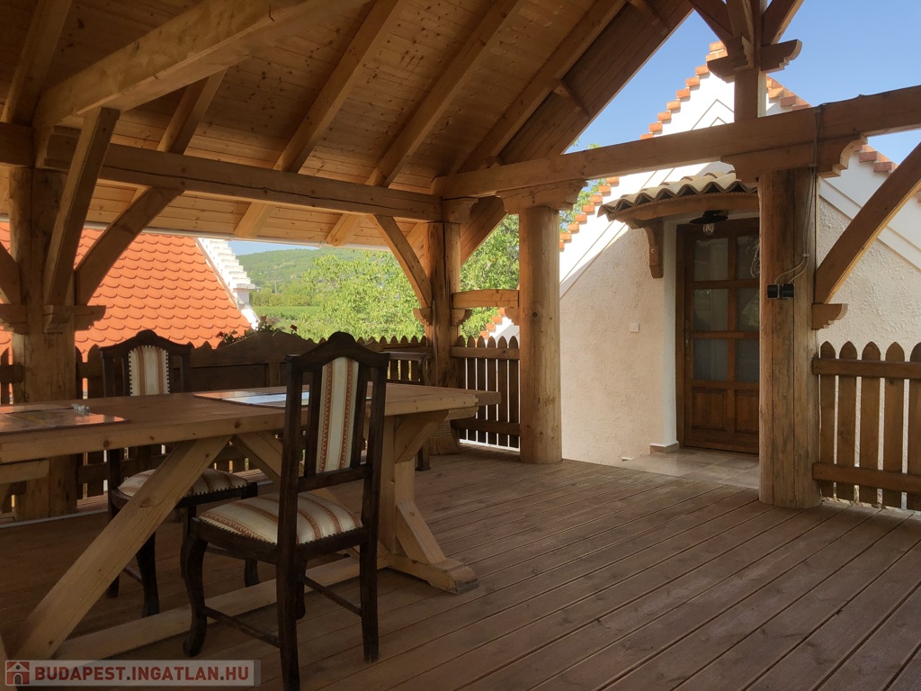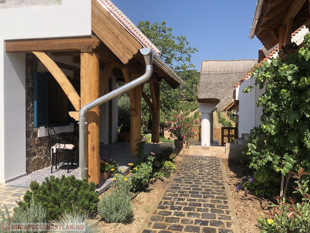 A 45 m²-es fa teraszról lélegzetelállító balatoni panoráma tárul elénk – a reggeli kávétól az esti borozásig minden pillanat emlékezetes itt. A ház alatt 45 m²-es hangulatos borospince található, emellett egy 25 m²-es melléképület is a tulajdonos kényelmét szolgálja.
