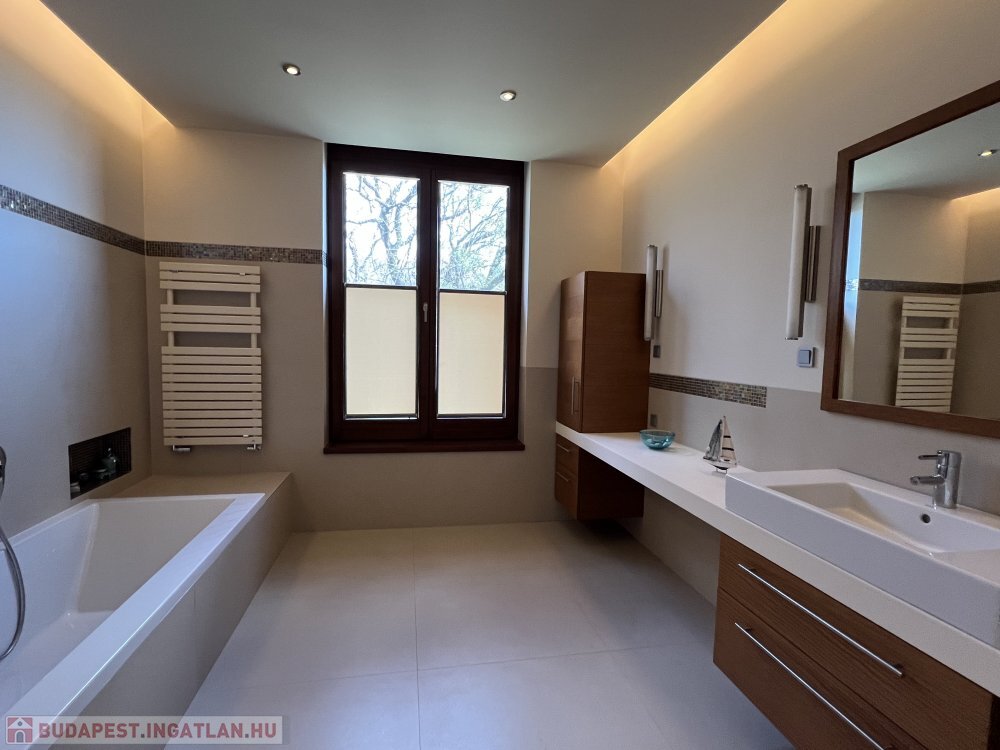 Az öt hálószobához külön fürdőszobák és gardróbok tartoznak, amelyek fokozzák az intimitást és kényelmet.