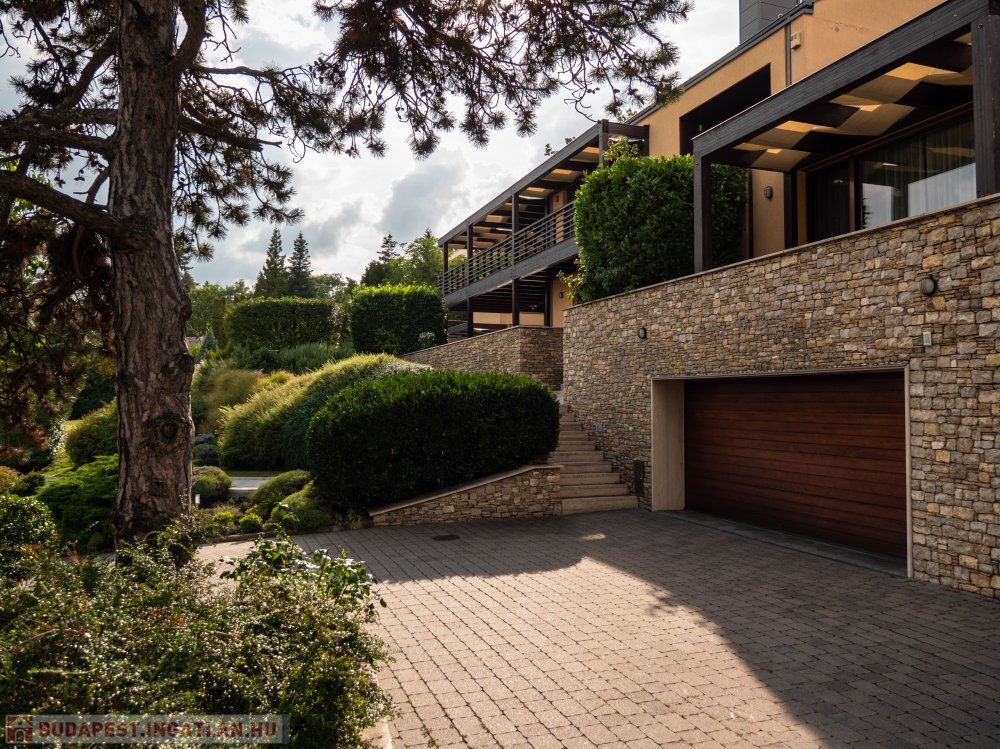 A telken gyönyörűen kialakított parkosított kert található automata öntözőrendszerrel, valamint egy nagyméretű kültéri medence, amely tovább fokozza a luxus élményt.