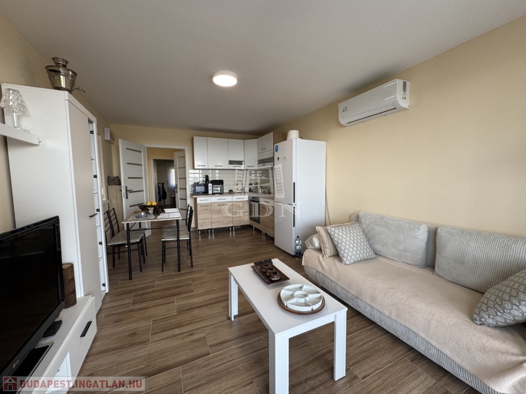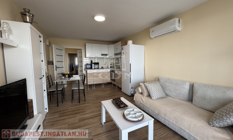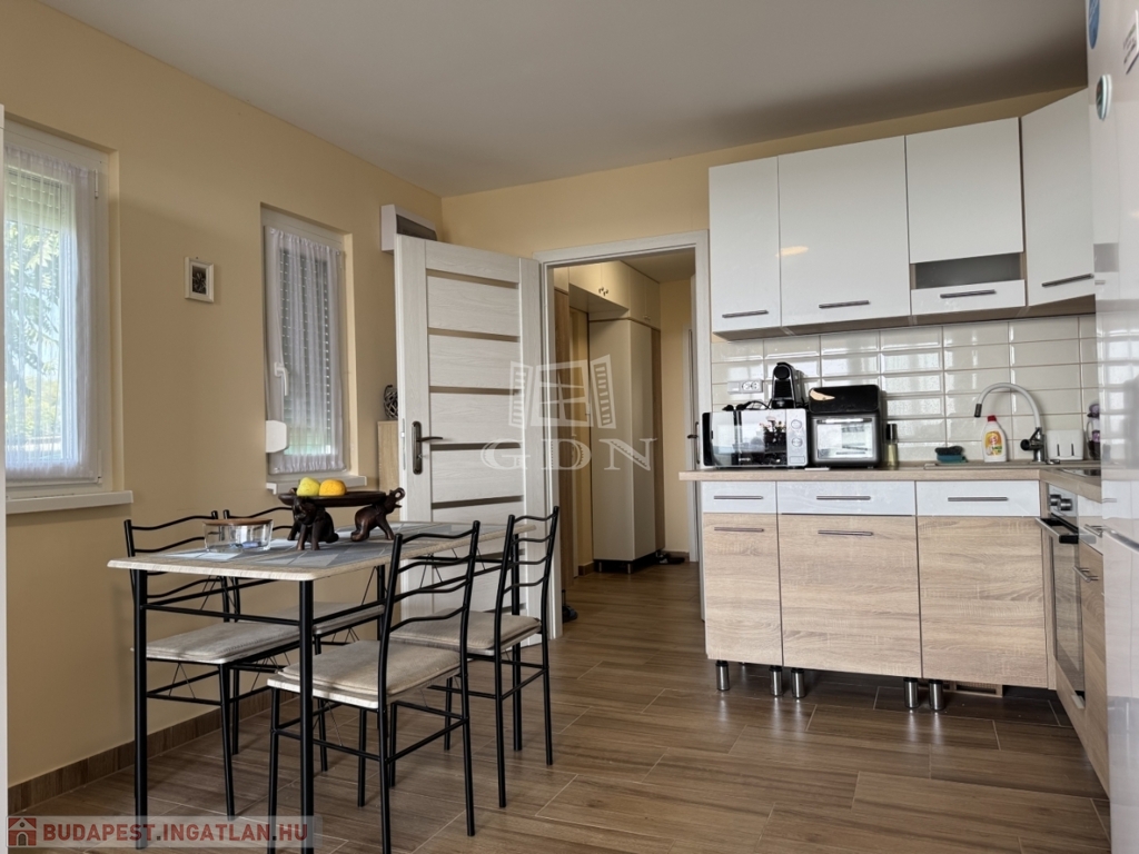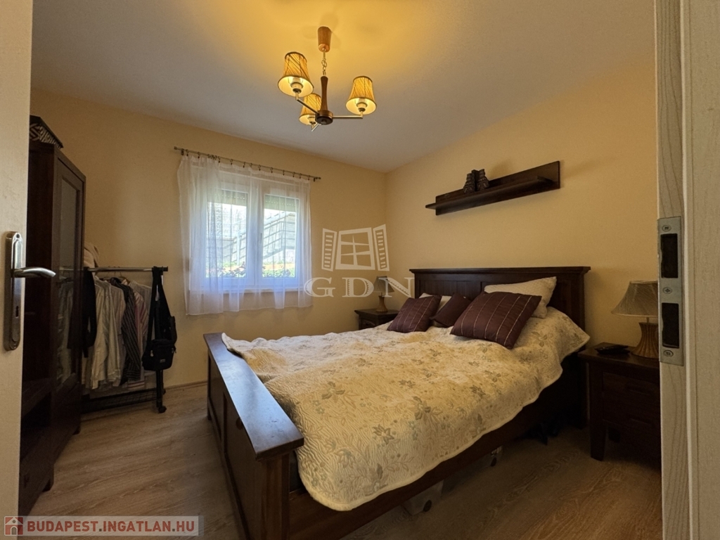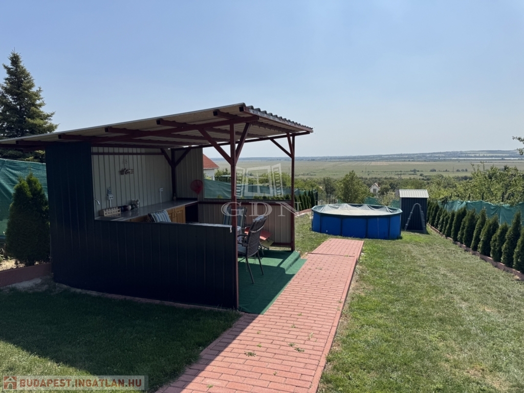 A telek 800m2, teljesen körbekerített, nagy része térkövezett és örökzöldekkel beültetett. Pergolás kültéri konyha áll rendelkezésre a kerti élményekhez.