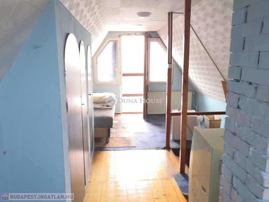 Az ingatlan belső két szintes kialakítású. Földszintjén egy nappaliszoba, két hálószoba, egy fürdőszoba+wc, és egy konyha helyiségek találhatóak, melyhez egy jelenleg tárolóként használt, tágas helyiség is csatlakozik, mely könnyedén hálószobává is átalakítható. Felső szintje beépített tetőtér, mely jelenleg egy helyiség, de könnyen szétválasztható szintén 2 különnyíló hálószobává. Innen egy napfényes tájolású, zöldre néző erkély is nyílik.