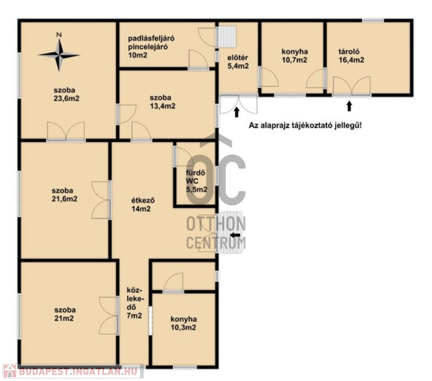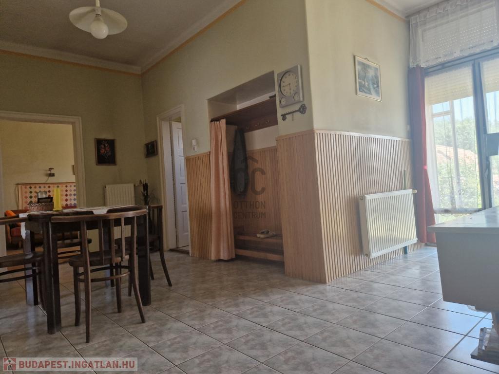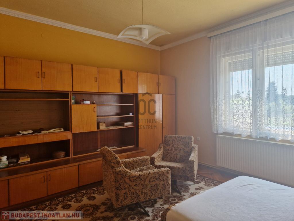 A 163 nm alapterületű, jó állapotú családi ház helyiségei: 4 szoba, 1 fürdőszoba-WC, 2 konyha, előszoba, tároló, étkező, padlásfeljáró-pincelejáró.
