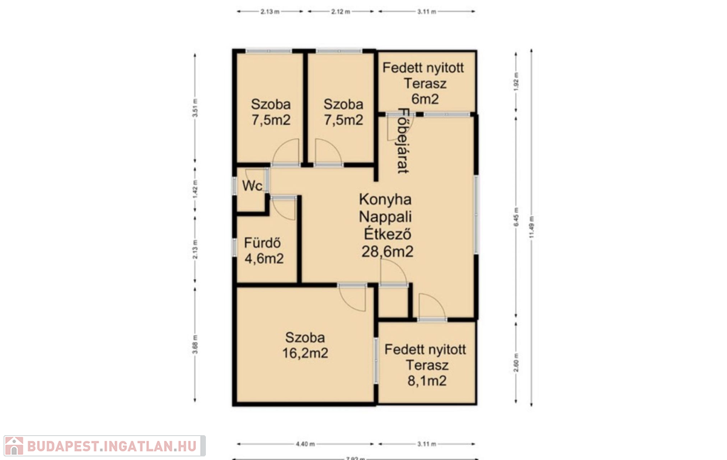 A hirdetésben a 67m2-es alapterület a ház belső mért nettó területe. A teraszok nem kerültek beszámításra. ( 6m2 és 6,2m2)