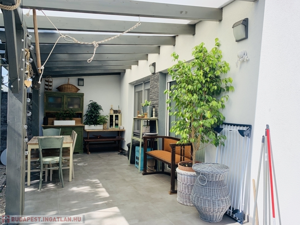 Eladó ikerház-fél Dabas központjához közel, 2021-ben, téglából épült, kiváló minőségű anyagokból.