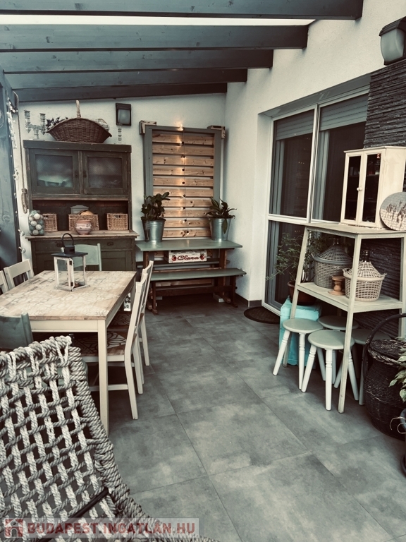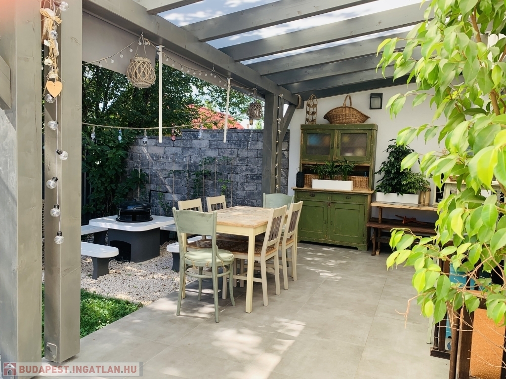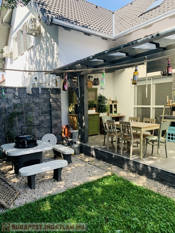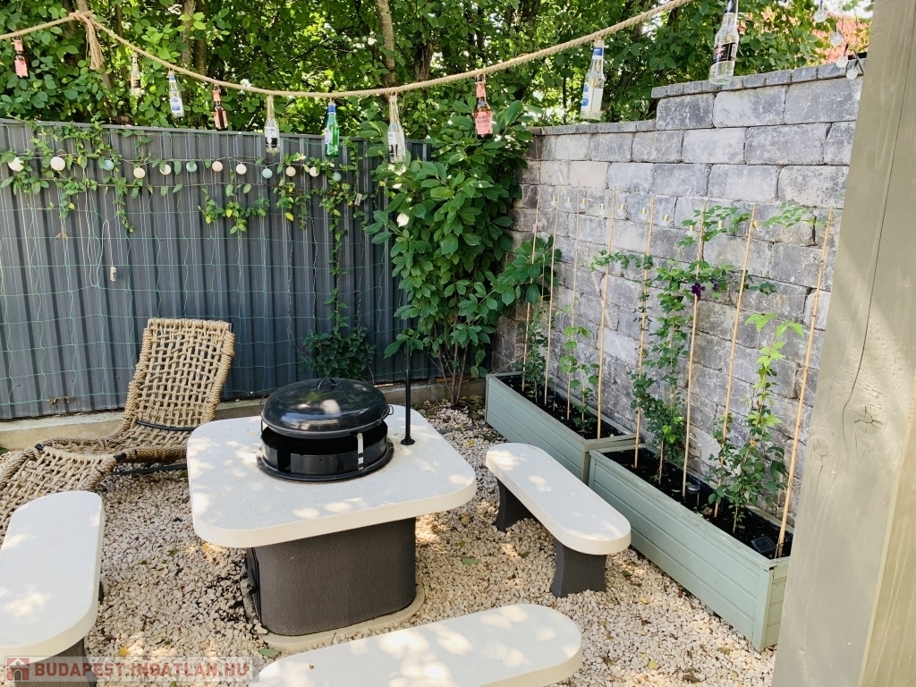 A parkosított udvaron elszeparált kerti grillező kapott helyet, valamint egy 15 m²-es műhely is megtalálható külön bejáratú tárolóval, amely ideális hely a hobbi vagy tárolási igények kielégítésére.