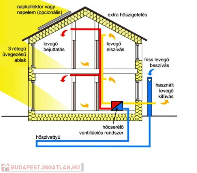 A passzívház nem egy konkrét építési technológia, hanem egy követelményrendszer, amely a passzív ház elveket (kiváló szigetelés, hővisszanyerés, napenergia hasznosítás) alkalmazva rendkívül energiahatékony épületeket hoz létre. Az épületek egészséges és tiszta pollenmentes levegőjéről a hővisszanyerős szellőztető berendezés gondoskodik, valamint a ház hűtését és fűtését is ez a hőszivattyús rendszer oldja meg padlófűtéssel kombinálva.
