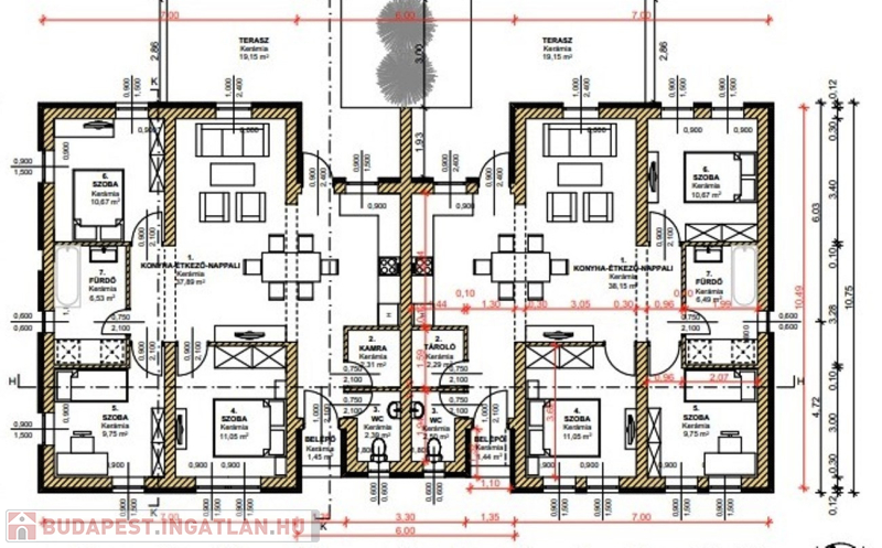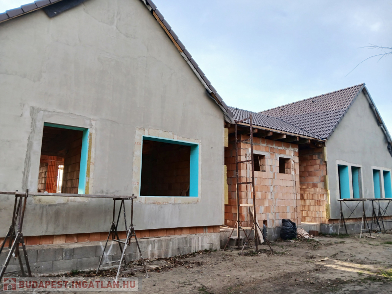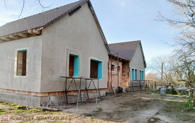 Budapesttől 35 percre, Dabas központhoz közel, de csendes részen eladó, egy külön bejáratos nettó 82 nm-es ikerház fél ház+ 19 nm-es terasz, 490 nm-es önálló. elkerített telekkel. A házak egy telken de teljesen külön kert résszel készülnek, ezért nagy előny, hogy a lakók nem zavarják egymást . A házban egy amerikai konyha-nappali-étkező, 3 db hálószoba, fürdőszoba, külön wc, tároló, előtér és fedett terasz lesznek kialakítva. Műszaki paraméterek: Sávalap vasbeton erősítéssel, épület falazata tégla 15 cm hőszigeteléssel. A tetőre cserép fedés kerül . A homlokzat színe fehér lesz. Nyílászárók műanyag szerkezetű bukó -nyíló kivitelben 3 rétegű üvegezéssel készülnek. A ház fűtése padlófűtés, amit hőszivattyús rendszer biztosít, ezekhez napelem kiállás is biztosítva lesz ( így akár 0 Ft-os rezsijű otthonban élhet aki ezt a házat választja). A ház bejárata előtt a járda viacolorból készül el. Igény szerint akár garázs is kérhető. A vonat, busz járat 10 percre, Iskola, óvoda, orvosi rendelő, gyógyszertár, bevásárló központ szintén a közelben. Amennyiben felkeltette érdeklődését, hívja a 06204004006-os számot