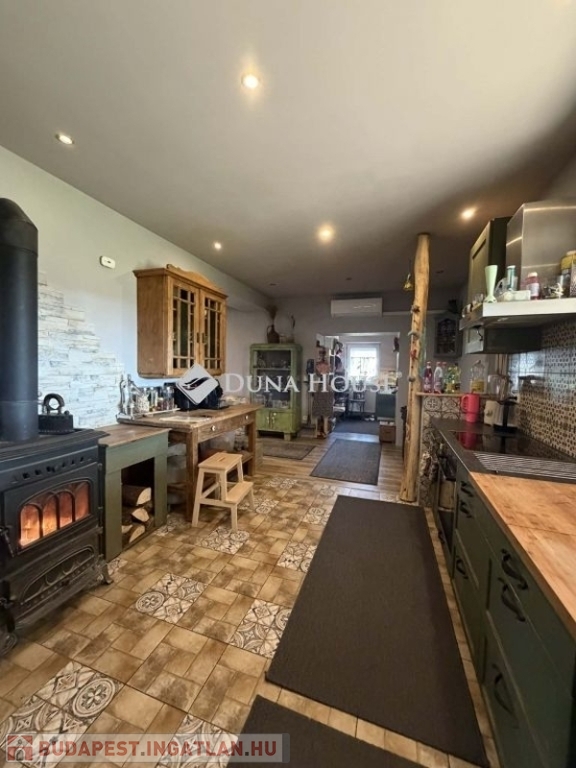 Minden közmű az ingatlanban, gázcsonk telken belül. Fűtést vízteres kandalló központilag adja radiátoros hőleadással. 1 db inverteres 3,5 kw-os klíma az étkezőben. Meleg vizet villanybojler szolgáltatja. 1x32 amper és éjszakai áram van.