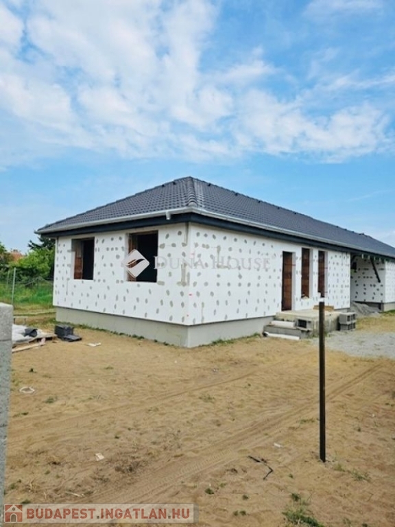 Alkalmi vétel !DÁNSZENTMIKLÓSON!!!Budapest határától 50 km  távolságra !Több mint 20 éves tapasztalattal rendelkező profi kivitelezőtől kínálok megvételre Pest megyén belül , Dánszentmiklóson egy praktikus elrendezésű 60,25 nm fűtött lakótérrel rendelkező ikerház feletAz ingatlanok a fedett autó beállóknál csatlakoznak, így közös fal nincs az iker féllel!Ehhez az ingatlanhoz 300 nm kert rész tartozik, és 2 db fedett autó beálló. Az ingatlan kialakítása :-Amerikai konyhás nappali-2 db hálószoba-Háztartási helység-Fürdőszoba-Wc-Előtér-Fedett autó beálló 2 dbMűszaki leírás:-Monolit beton sáv alapzat-B 30 -as PTH tégla fal ( válaszfalak 10 cm PTH fal)-15 cm polisztirol hőszigetelés-10 cm  polisztirol lábazat szigetelés-Záró réteg : tört fehér nemes vakolat,-aljzaton sötétbarna műgyanta lábazati vakolattal ellátvaTető:15*15.ös gerendázat-2,5*15-ös szarufa-10*15-ös ellen lécezéssel-3*5-ös tető lécekkel ellátva-Barna szinű tetőcseréppel fedveA tető szigetelése 30 cm kőzetgyapottal ellátva.Nyílászárók  Fehér színű 3 rétegű műanyag ablakokAz ingatlan fűtése Hőszivattyús fűtés padlón keresztül történő hőleadással.Az ár tartalmaz egy darab  3,5 kw teljesítményű Hűtő-Fűtő klímát.Hideg meleg burkolatok 6000 Ft / nm  árig választhatóakVárható átadás 2025 . 10 hó vége