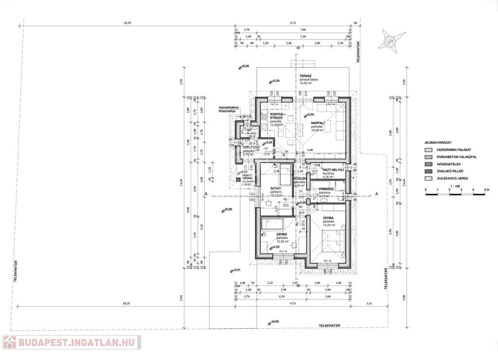 Az ingatlan 30-as Nútféderes tégla falazóelemből épül, fa födémmel.