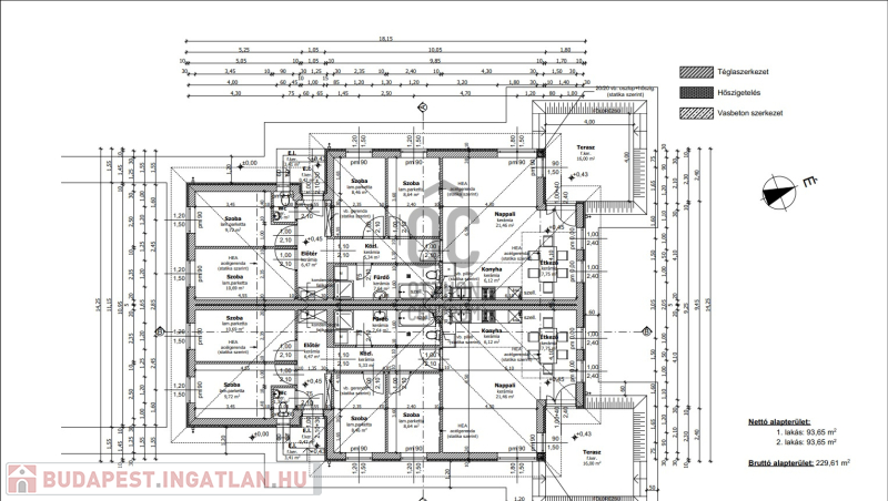 A házak Bruttó 114 m2, hasznos alapterület 94 m2 + 16 m2 terasz + előlépcső!