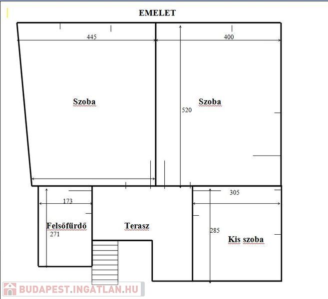A földszinten 2 nagy méretû szoba, konyha, fürdõszoba és WC, az emeleten 3 szoba, fürdõszoba, WC, valamint egy nagy terasz található