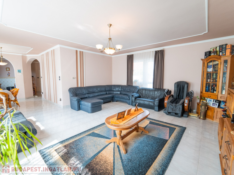 A 450 m²-es telek tökéletesen szolgálja a családi pihenést: gondozott kert, szalonnasütő, valamint egy 35 m²-es garázs várja, amelyben akár két autó is kényelmesen elfér. A tágas belső tér és a praktikus elrendezés kényelmet biztosít minden családtag számára, miközben az udvar nyugodt környezete ideális kikapcsolódást nyújt.