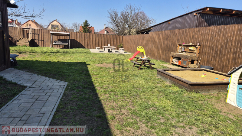 Az otthon kényelméhez két klíma, kombi kazán és egy okosrendszer is hozzájárul, amelyről távolról vezérelhető a kapu, a fűtés, a klímák, a riasztó és a világítás. A 700 m²-es telek rendezett és élhető: 50 m²-es előkert díszfákkal, 40 m² fedett terasz, saját szalonnasütő, játszótér, vetemény és kétállásos beálló. Új tetőlemez, új kerítés, műanyag nyílászárók, 3 fázisú áram, 4 zónás riasztó és külső kamerák teszik biztonságossá és időtállóvá.
