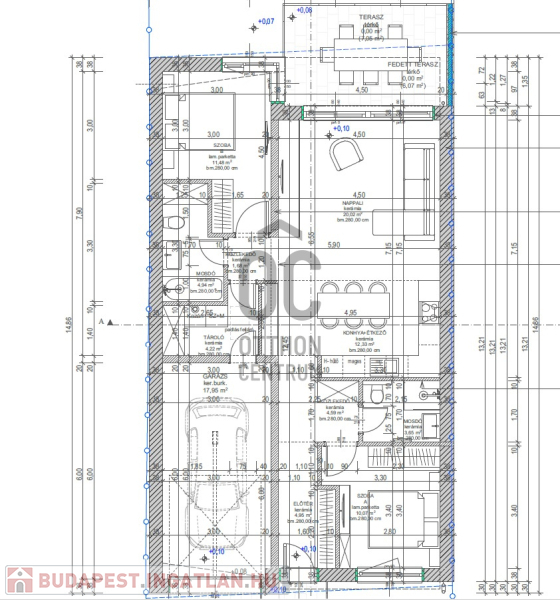 - Terasz és kert: nappaliból nyíló 6 m²-es terasz + 200 m² saját kert