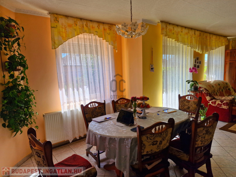 A 142 m²-es, szintes elrendezésű ház folyamatosan karbantartott, így új lakói azonnal birtokba vehetik. Kialakítása kifejezetten a család kényelmét szolgálja: a 4 külön nyíló szoba lehetőséget ad arra, hogy minden gyermeknek vagy családtagnak saját birodalma legyen, míg a tágas nappali a közös együttlétek színtere. A külön étkező és teljesen felszerelt konyha garantálja, hogy a közös étkezések igazi családi élményt jelentsenek.