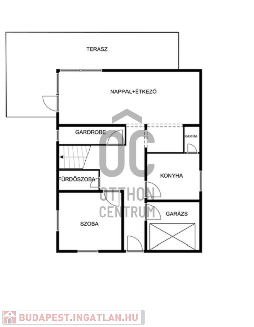 - földszinten: tágas, részben fedett terasz- és kertkapcsolattal bíró Nappali, hangulatos és működő kandalló ,fürdőszoba, kamra-konyha, pincelejáró, gardrób