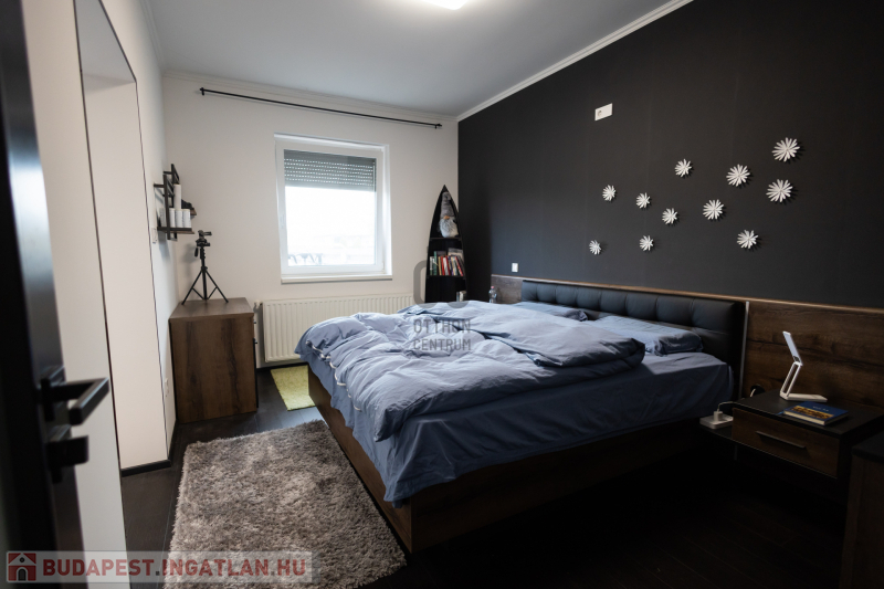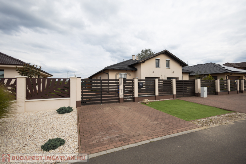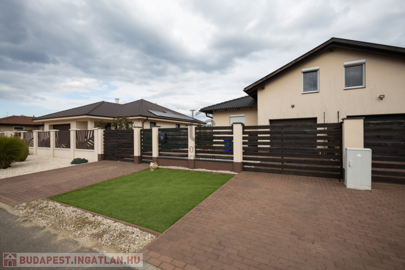 A 573 nm-es, gondosan karbantartott telken fekvő 134,7nm-es ingatlan, nappali + 4 hálószobás elrendezéssel biztosítja a tágas és kényelmes életteret akár nagyobb család számára is. A ház különlegessége a magas műszaki tartalom – padlófűtés, prémium nyílászárók, energiatakarékos megoldások, valamint egy fűtött, automata kapus garázs, amely a hűvösebb hónapokban is maximális kényelmet biztosít.