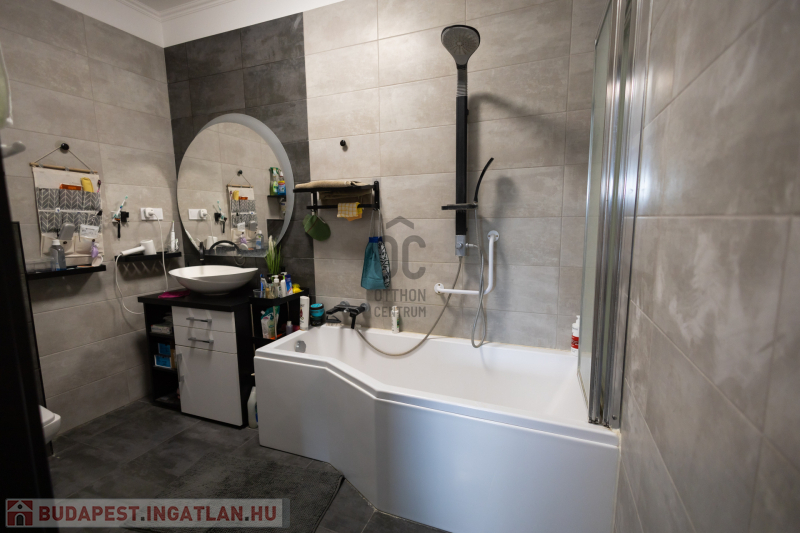 Két elegáns kialakítású fürdőszoba, valamint a lakás belső tereiben alkalmazott egyedi és kreatív design-megoldások emelik az otthon színvonalát. A jól átgondolt belsőépítészeti elemek minden szobában harmóniát és stílust sugallnak.
