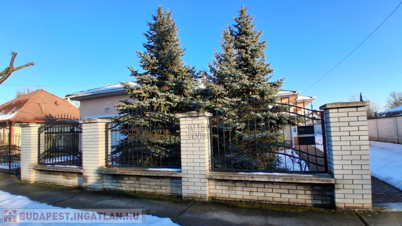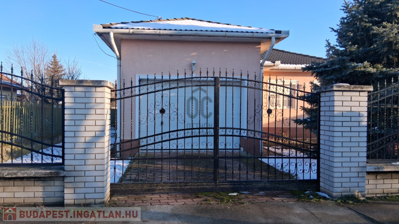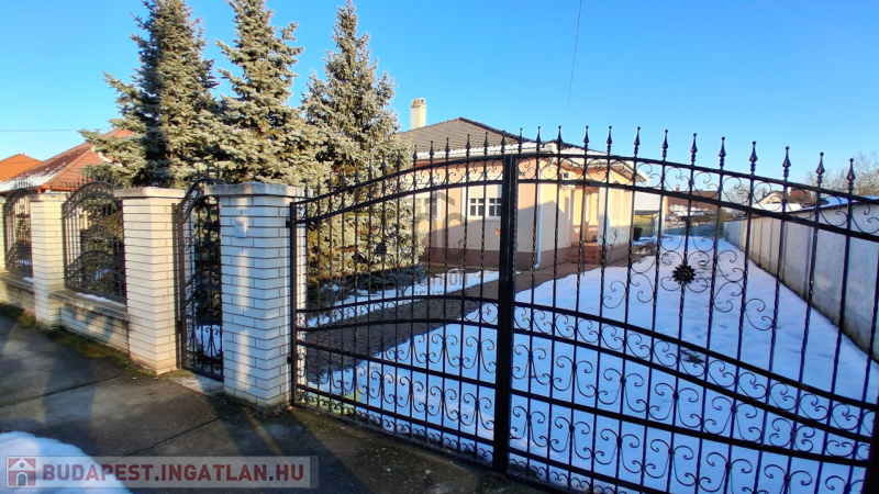 -Kovácsoltvasból készült ízléses kerítése szintén elektromos kapunyitós szerkezetű.