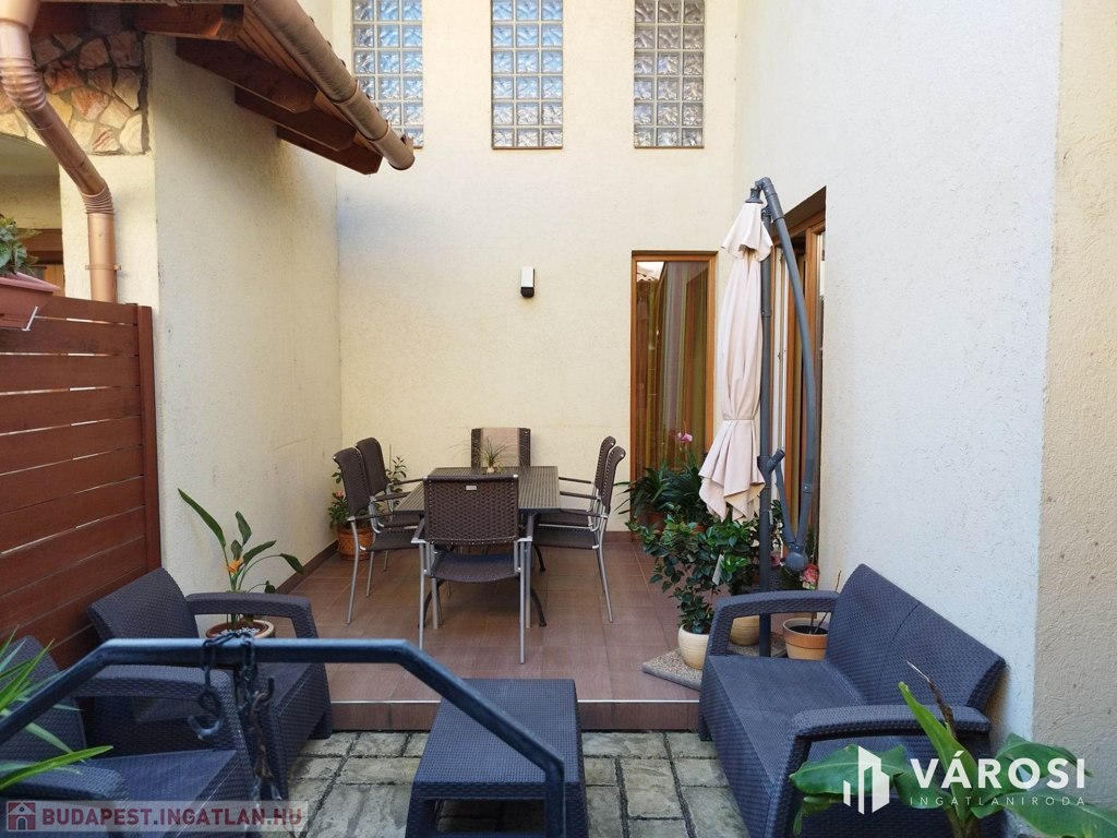 Debrecen kiemelt zöldövezetében a Liget lakóparkban, 125 nm-es 3 szoba nappalis szélső sorház 300 nm telekkel eladó. Az ingatlan csendes igényes szép környezetben helyezkedik el, és mivel nem közbülső sorház így a telek is nagyon jól élhető, rendezett parkosított, szép nagy teraszos, és a ház is 3 oldalról körbe járható. A ház elosztási kiváló, a földszinten található a nappali étkező konyha, egy wc mosdó, és természetesen a garázs. A felső szinten pedig 3 hálószoba, fürdőszoba wc, és egy szép nagy terasz. Ha egy igazán exkluzív helyen keres egy igazán jól megtervezett élhető házat akkor hívjon és nézze meg!