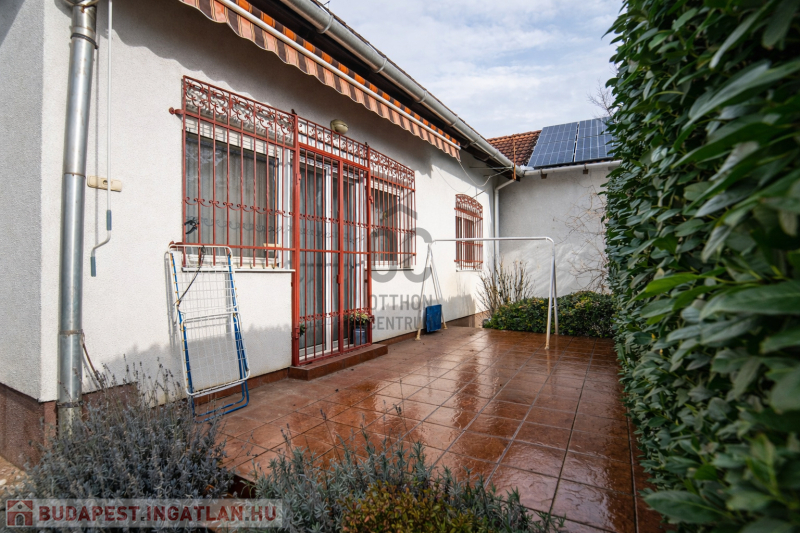 A kert igazi ékkő: beállt növényzettel, fúrt kúttal, kerti tárolóval és szalonnasütővel, amely ideális helyszíne lehet nyugodt délutánoknak vagy baráti összejöveteleknek.