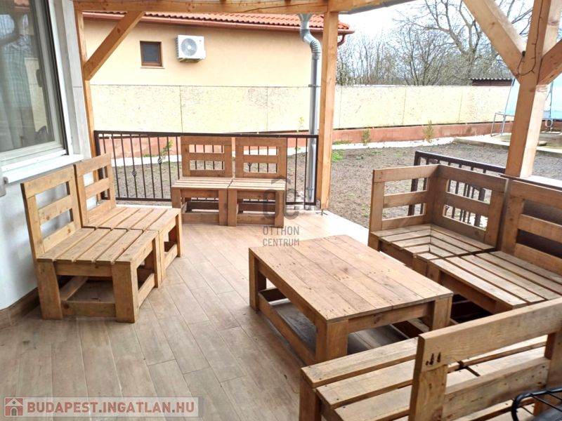 - 36 m²-es fedett terasz új burkolatokkal, amely kinti konyha kialakítására is alkalmas (víz, villany, csatorna bekötve)