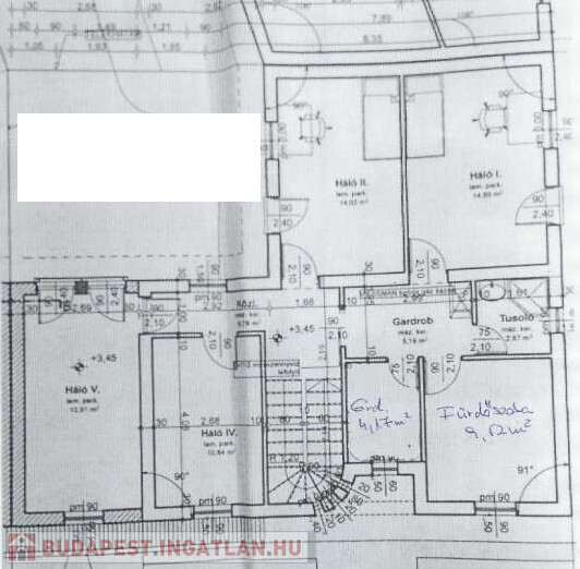 • emeleten 3 db különnyíló, 14–15 m²-es hálószoba,