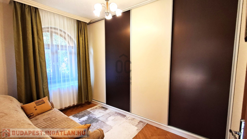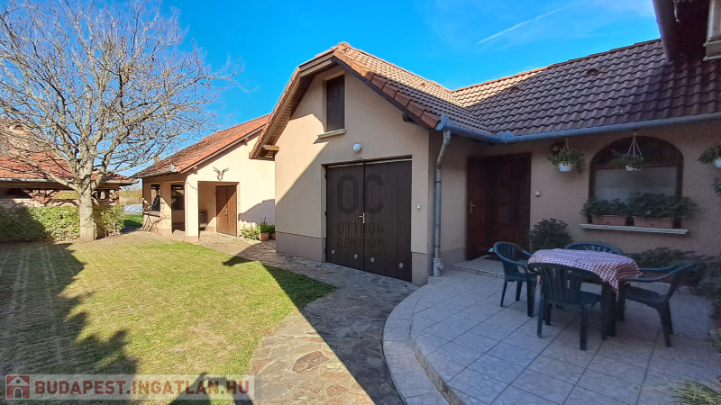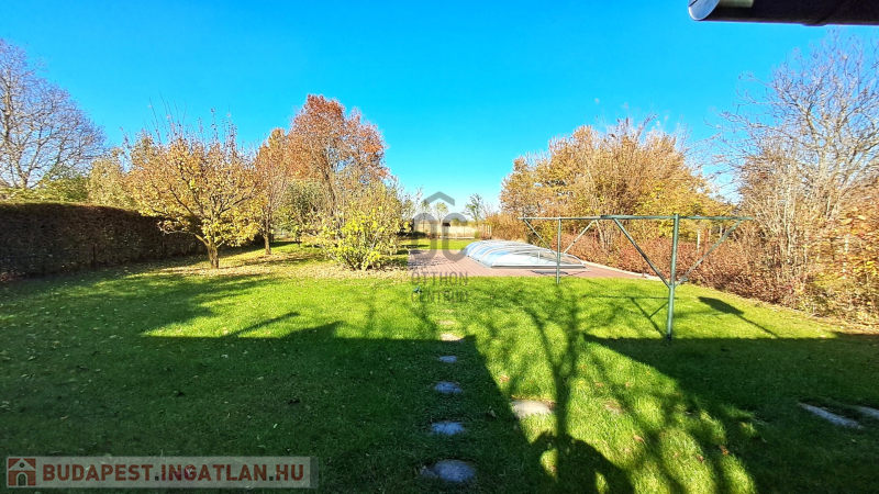 --szépen füvesített, örökzöldekkel, gyümölcsfákkal beültetett kert, mely automata öntözőrendszerrel, fúrt kúttal ellátott.