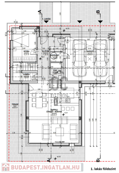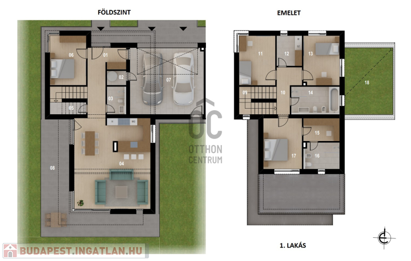 A garázs két gépjármű parkolására alkalmas.